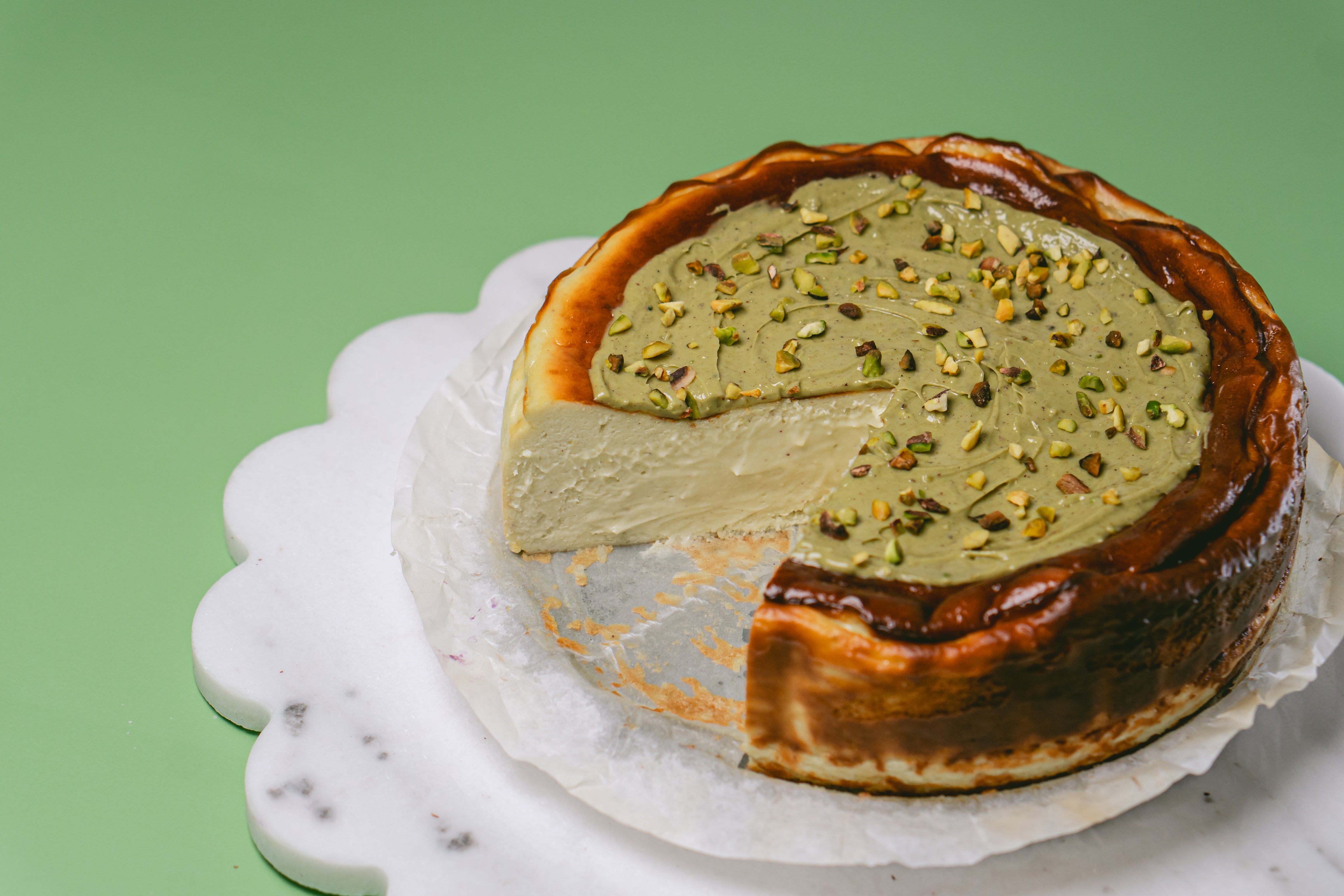 This cheeky twist on the classic is bursting with nutty personality and wrapped in a caramelized hug. Dive into the irresistibly creamy center where pistachio dreams come true with our Perfect Pistachio Basque cheesecake.
